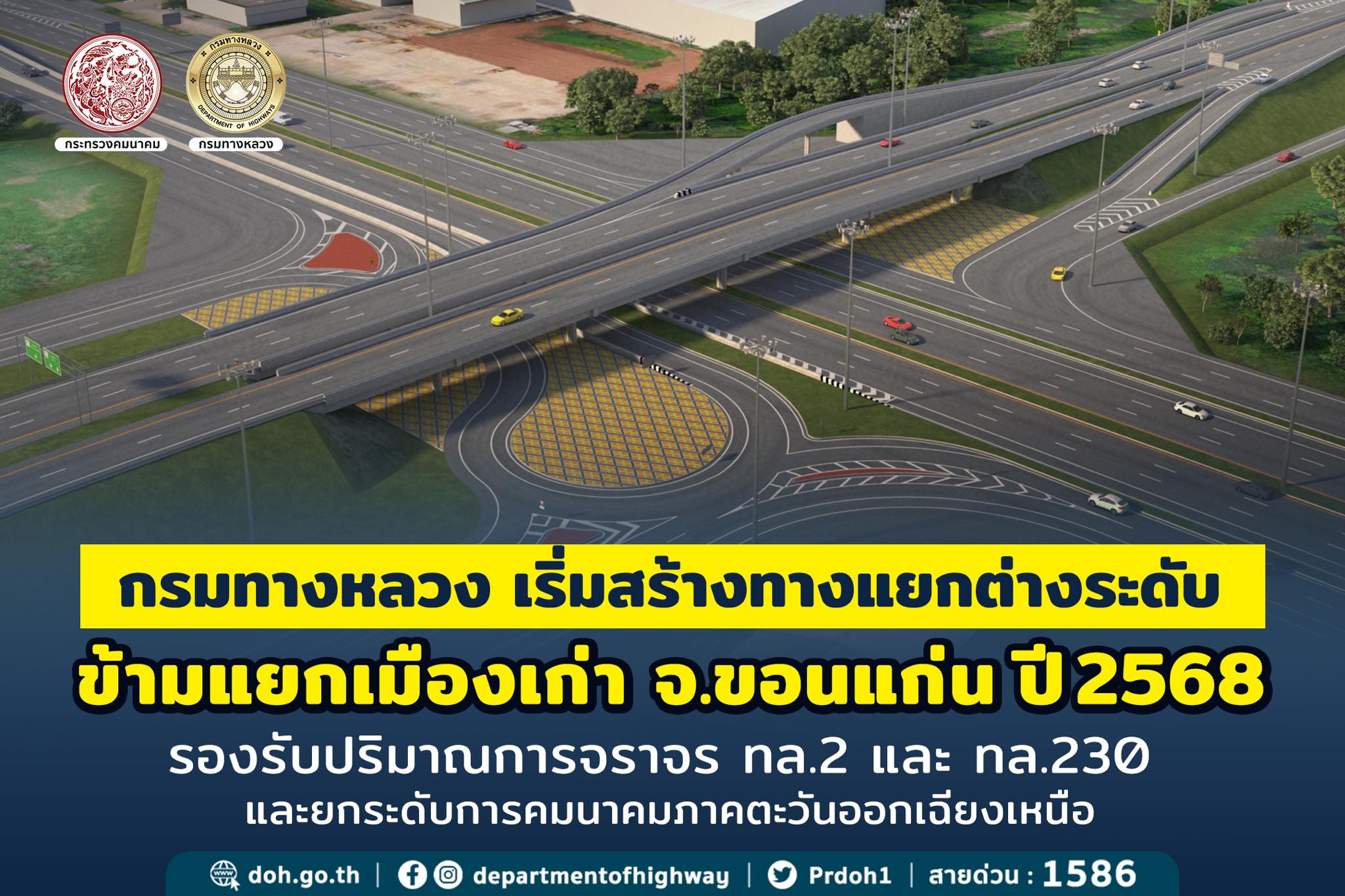 ขอนแก่นเฮ! กรมทางหลวงเริ่มสร้างทางแยกต่างระดับข้ามแยกเมืองเก่า จ.ขอนแก่น ปี 2568 รองรับปริมาณการจราจร ทล.2 และ ทล.230 และยกระดับการคมนาคมภาคตะวันออกเฉียงเหนือ