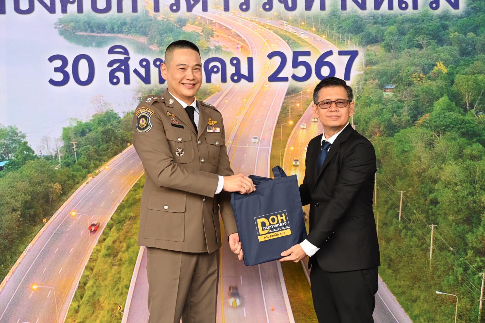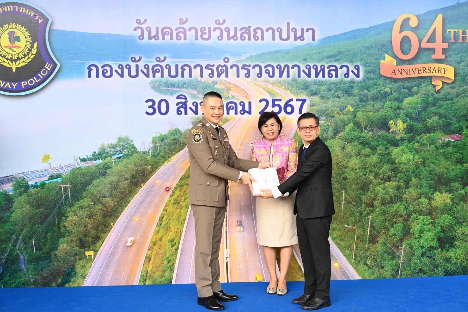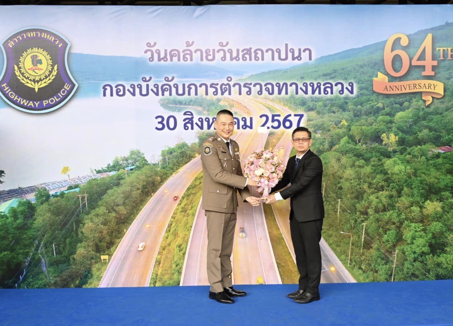 วันนี้ (30 สิงหาคม 2567) นายวีรพล วงศ์วิเชียร เลขานุการกรม กรมทางหลวง ผู้แทนอธิบดีกรมทางหลวง พร้อมด้วย นางสาวอัญชลี สาทะ ผู้อำนวยการกองการเงินและบัญชี และ นางภาษิตา บุรสมบูรณ์ ผู้แทนผู้อำนวยการกองการพัสดุ ร่วมแสดงความยินดี เนื่องในวันคล้ายวันสถาปนากองบังคับการตำรวจทางหลวง (บก.ทล.) ครบรอบ 64 ปี ณ กองบังคับการตำรวจทางหลวง เขตราชเทวี กรุงเทพมหานคร โดยมี พล.ต.ต.คงกฤษ เลิศสิทธิกุล ผู้บังคับการกองบังคับการตำรวจทางหลวง ให้การต้อนรับ